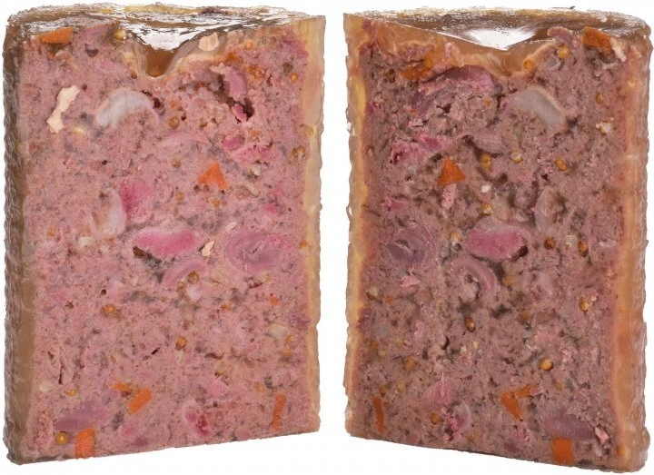 Состав: 66% утка, 14% бульон, 8% пшено, 4.3% морковь, 2% яблоки, 2% минералы, 1% смесь трав (розмарин, тимьян, календула, одуванчик), 1% лососевое масло, 1% петрушка, 0.5% семена льна, 0.2% водоросли и черная смородина.