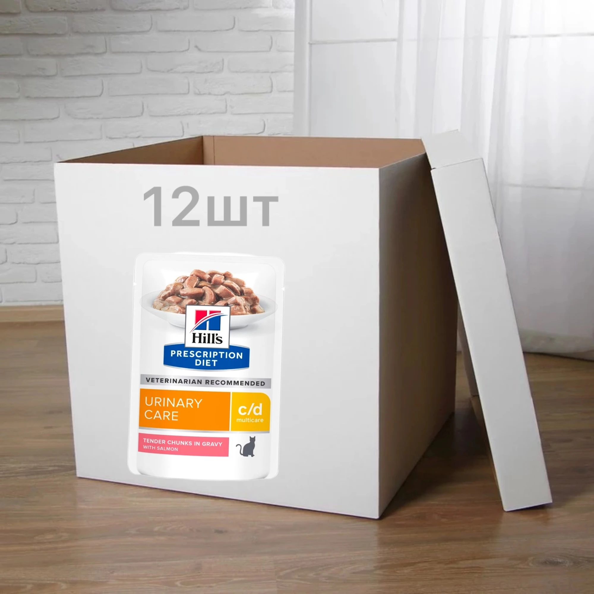 Влажный корм для кошек Hill's Prescription Diet c/d, с лососем – полнорационное диетическое питание, специально разработанное диетологами и ветеринарными врачами, чтобы помочь котам с заболеваниями нижних отделов мочевыводящих путей (ЗНВСШ).