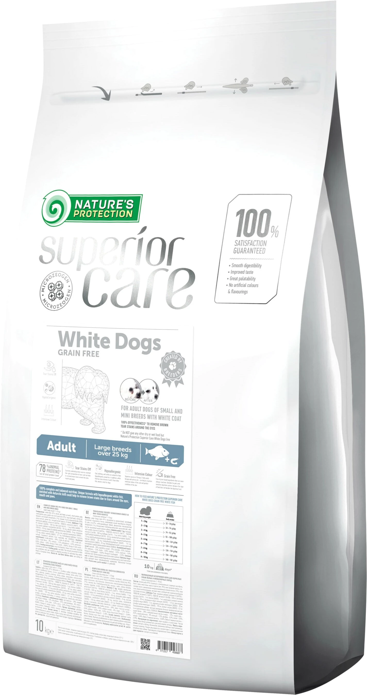 Склад: біла риба 41% (сушена та подрібнена), сушений картопля, батат, горох, жир птиці, борошно з криля (мін. 4%), жом цукрових буряків, лососеве масло, динамічно мікронізований клиноптилоліт (1%), насіння льону, фруктоолігосахариди, екстракт юки, зелений чай, сушена календула (джерело лютеїну).
