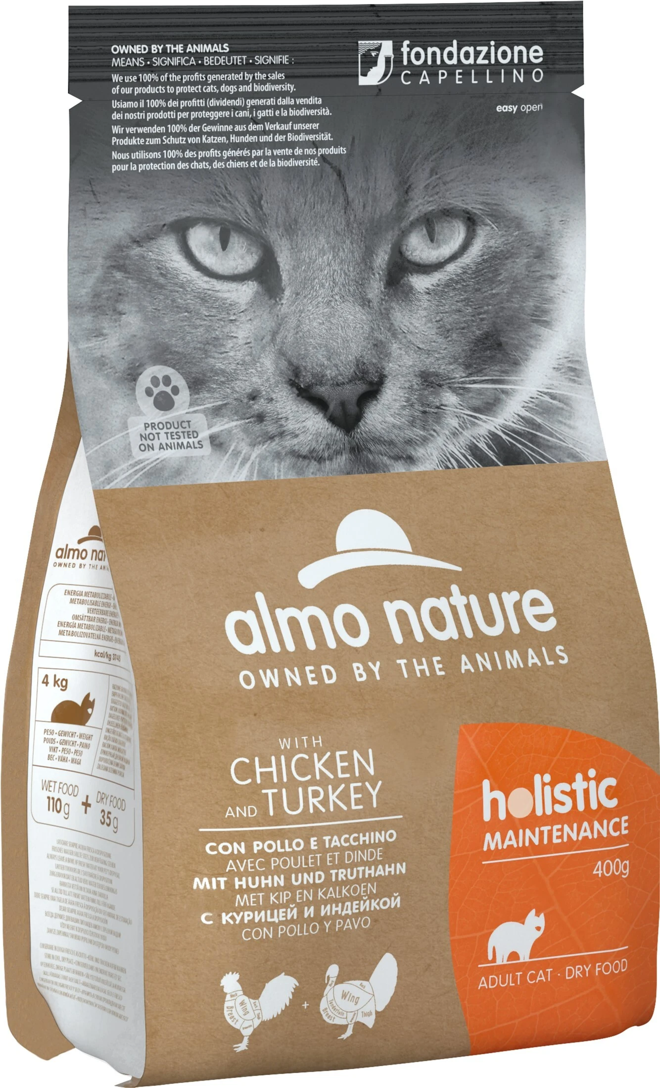 Almo Nature Holistic Cat — повнораціонний сухий корм з куркою, індичкою та рисом, спеціально розроблений для дорослих котів.