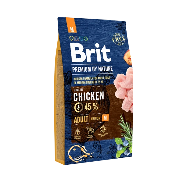 Повноцінний корм з куркою для дорослих собак середніх порід (10-25 кг). З високим вмістом курки.
