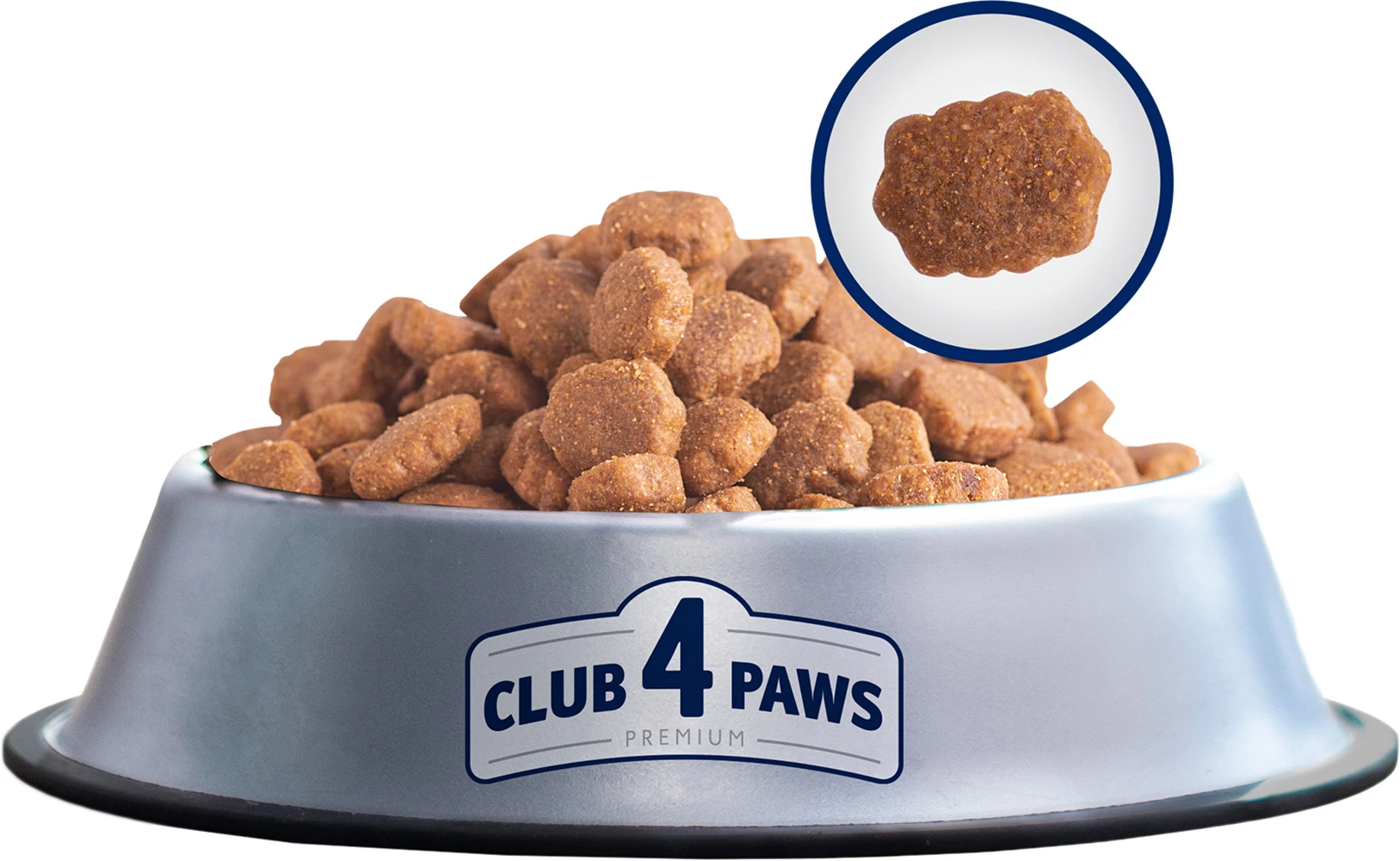 Сухий преміум-раціон Club 4 Paws містить м'ясні інгредієнти на першому місці в складі, хондроїтин і глюкозамін для здорових суглобів собак великих порід вагою від 25 до 90 кг і у віці від 1 року. Раціон збагачений комплексом Омега 3 + Омега 6 для здорової шкіри та блискучої шерсті, а також формулою INTEGRAMIX для загальної підтримки здоров'я вашого улюбленця.