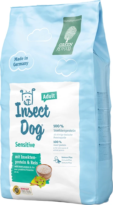InsectDog Sensitive. Повноцінний корм для дорослих собак 10кг без глютену, з 100% вмістом комах як єдиного джерела білка тваринного походження