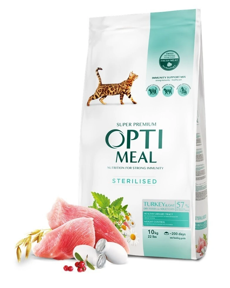 Повнораціонний сухий корм для стерилізованих котів та кастрованих котів – індичка та овес