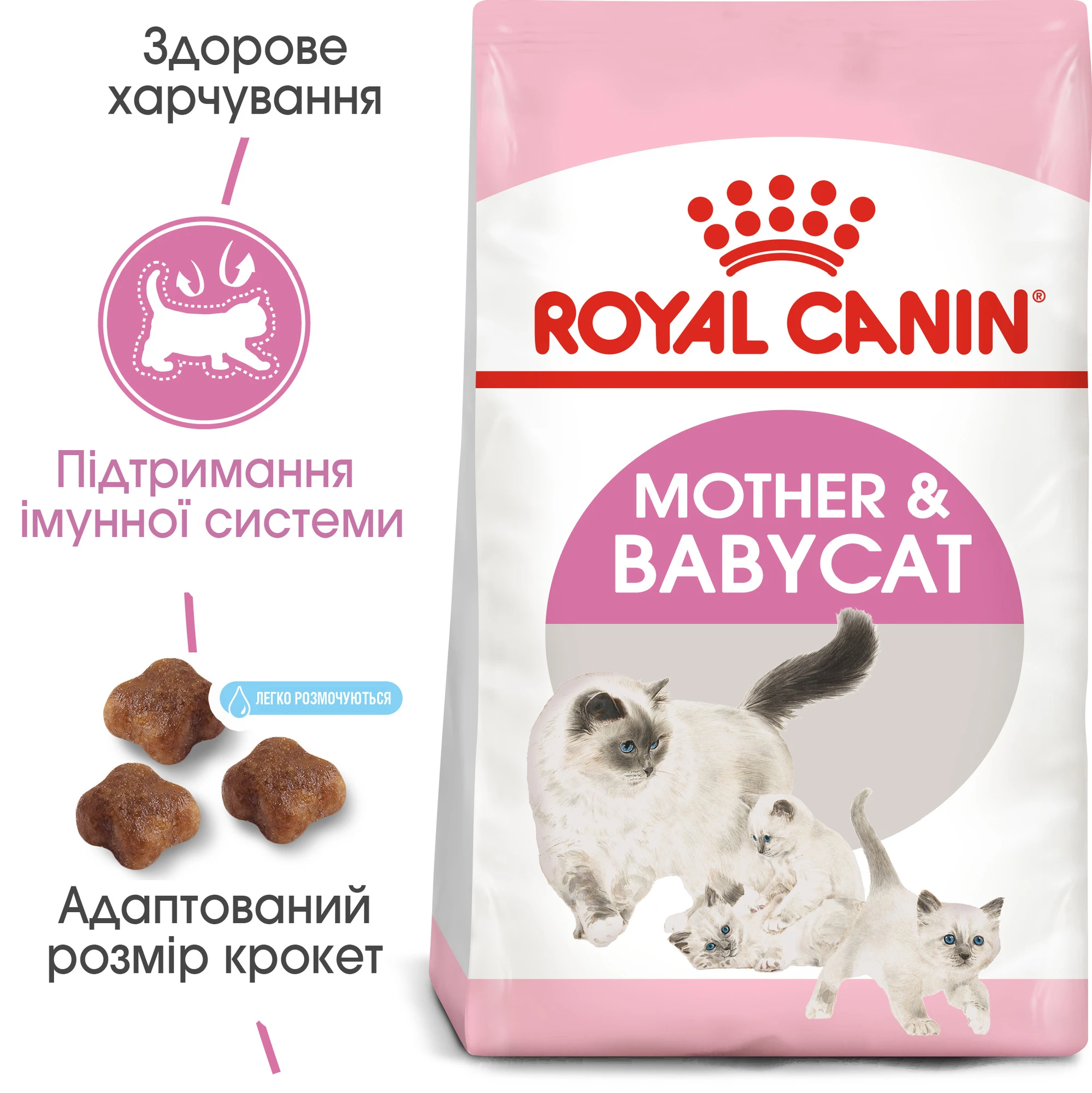 Повноцінний сухий корм для кішки під час вагітності та лактації, а також для кошенят від 1 до 4 місяців.