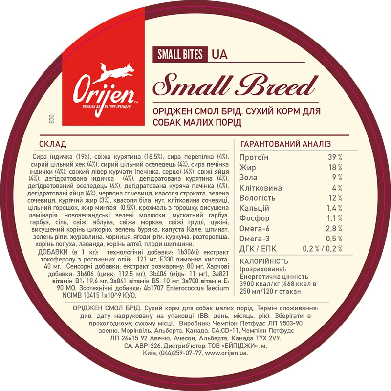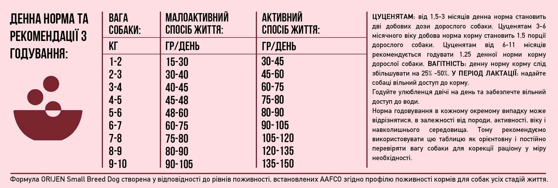 - Раціон підходить для собак малих порід на всіх стадіях життя.