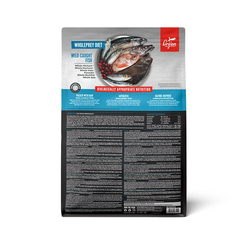 Високопротеїновий (38%), з обмеженою кількістю вуглеводів (18%), ORIJEN SIX FISH забезпечує харчування всіх собак на всіх стадіях життя, відповідно до їх еволюційних і біологічних потреб.