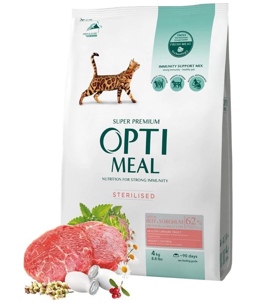 Повнораціонний сухий корм для стерилізованих кішок та кастрованих котів - з високим вмістом яловичини та сорго