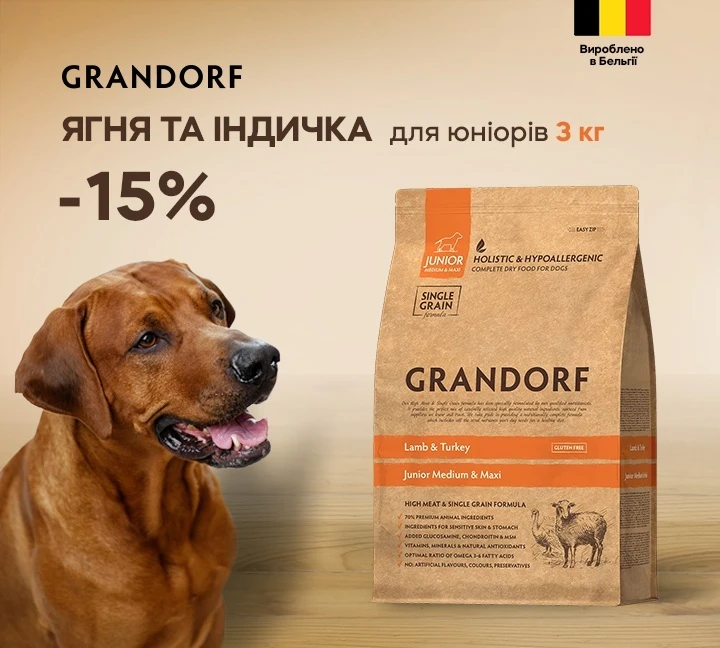 Зверніть увагу! До корму Grandorf не додаються штучні барвники, тому в різних партіях колір гранул може змінюватись.