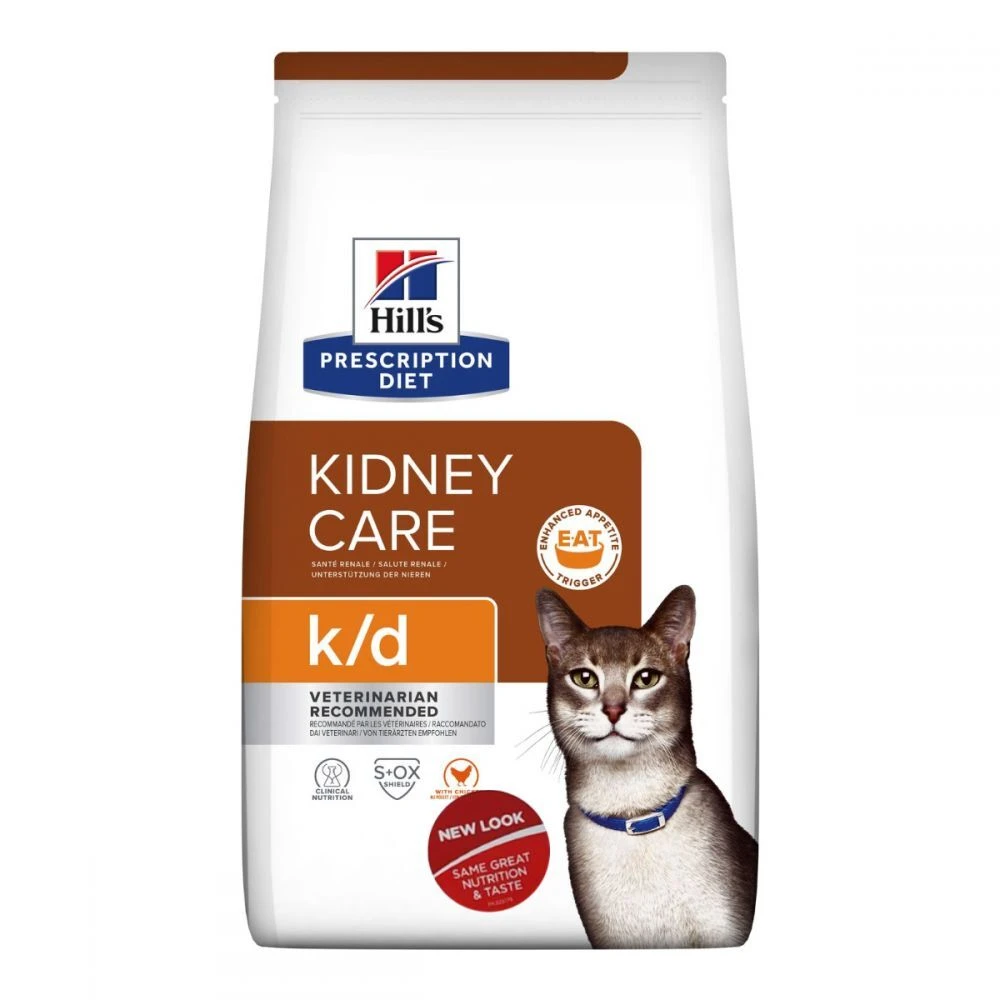 Hill`s Prescription Diet k/d корм для котів допомагає продовжити життя і значно покращити якість життя тварин, допомагаючи знизити прогресування і симптоматику захворювань. Ключові переваги Знижений рівень білка для запобігання утворенню токсичних продуктів розпаду, які викликають дискомфорт. Додатковий рівень омега-3 ЖК з риб'ячого жиру для покращення ниркового кровообігу. Допомагає нейтралізувати вільні радикали завдяки високому вмісту антиоксидантів. Має відмінний смак і полегшує змішане годування як сухим, так і консервованим кормом.