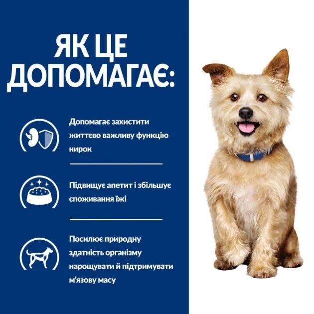 Hill's Prescription Diet k/d корм для собак – повноцінний дієтичний раціон для підтримки функції нирок при хронічній або ОПН у дорослих собак. Містить низький рівень фосфору та знижений рівень білка високої біологічної цінності.