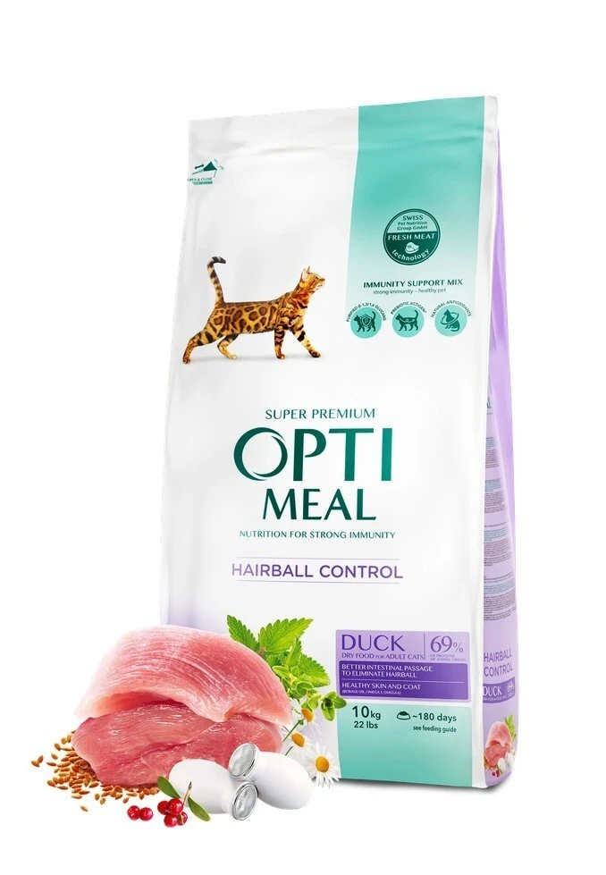 Повнораціонний сухий корм для дорослих котів з ефектом виведення шерсті – качка