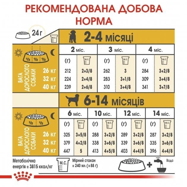 Размер, форма, текстура и формула крокеты специально разработана для щенков лабрадора ретривера. Помогает ограничить образование зубного камня