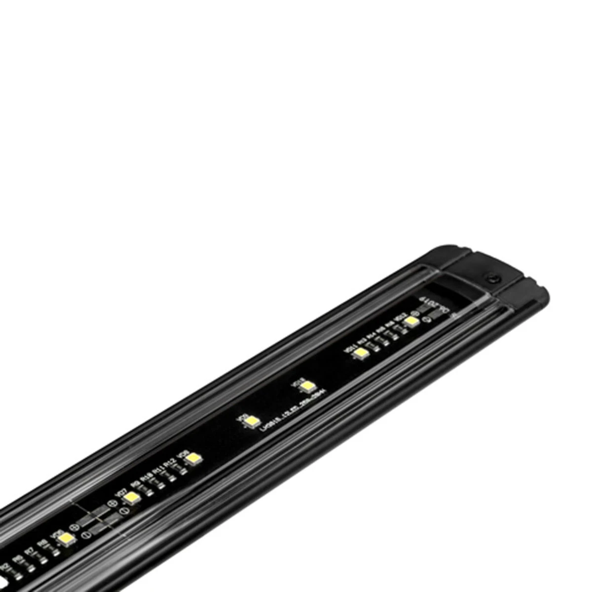 Світлодіодний світильник AquaLighter Slim призначений для роботи в надводному стані і слугує для освітлення прісноводних акваріумів. Регульовані кріплення дозволяють використовувати світильник для акваріумів різної довжини з товщиною скла до 12 мм. На відміну від люмінесцентних акваріумних ламп, світло AquaLighter Slim створює об'ємну картину сприйняття акваріума, натурально імітуючи сонячне світло. У комплект входить контролер, який дозволяє вмикати/вимикати, а також регулювати яскравість за допомогою пульта дистанційного керування. Сертифікований блок живлення зі змінними вилками під всі типи електромереж (EU, AU, US, ENG). -Світлодіоди SAMSUNG. Найкраща у світі ефективність 223 Лм/Вт -Стимулює ріст рослин -Високий індекс кольоропередачі (>85) -Дистанційне керування