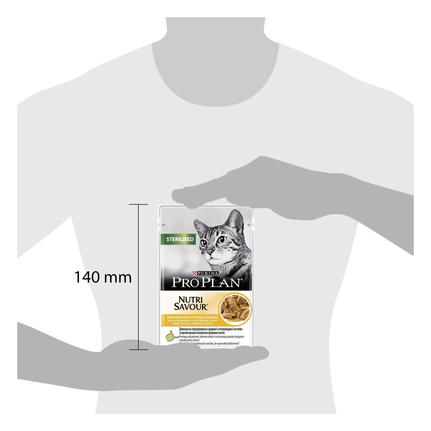 Влажный корм Pro Plan Sterilised Nutrisavour нежные кусочки с курицей в подливке — это высококачественный корм для стерилизованных кошек и кастрированных котов с высоким содержанием белка и низким содержанием жира, объединяющий все необходимые питательные вещества, включая витамины А, D и Е, и минеральные вещества. Специальная формула корма помогает поддерживать здоровье мочевыделительной системы за счет повышения потребления воды животными, способствует снижению минеральной насыщенности мочи.